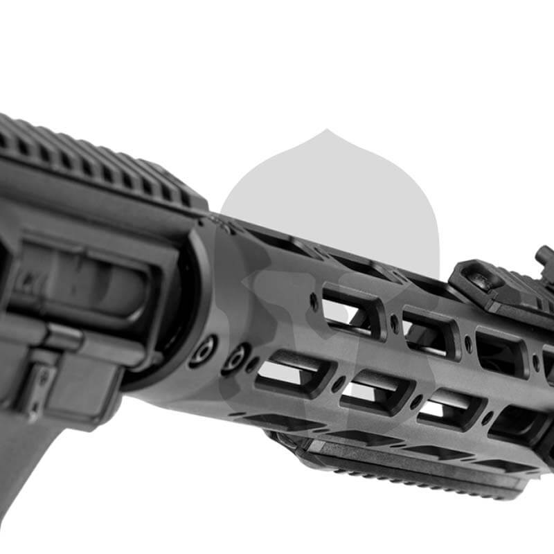 - Material: Metall (RIS Schiene auf Main Body, Vorderschaft, Stock Tube, Schalldämpfer, Innen- und Außenlauf, Feuerwahlhebel, Magazinauswurf, Durchladehebel); Kunststoff (RIS am Vorderschaft, Main Body, Griff, Zugschaft, Visierung)