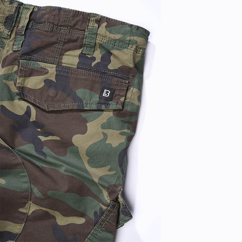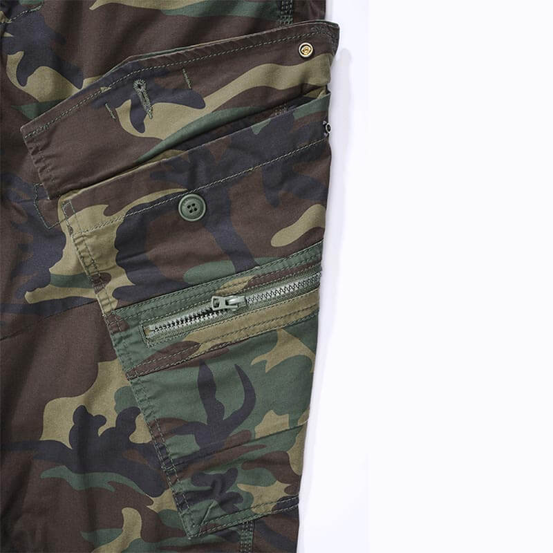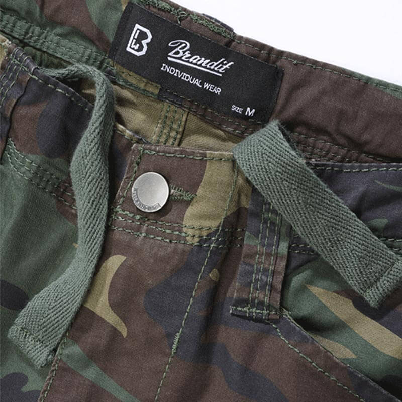 - zwei große, schräg aufgesetzte Taschen am Bein mit Patte und Knöpfen