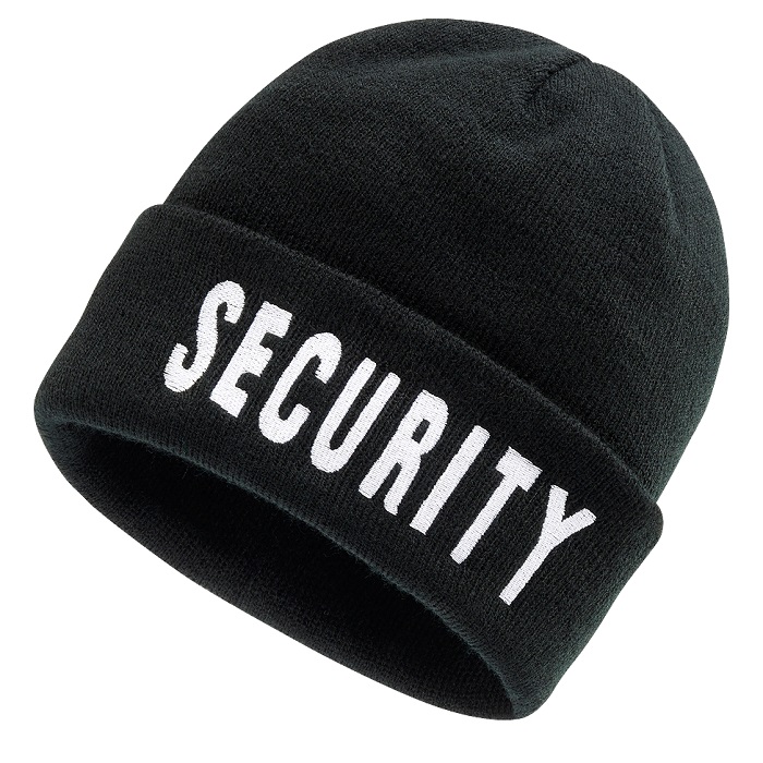 Klassischer Ripp-Strick und unifarbenes Design mit aufgesticktem Schriftzug statten die Beanie Security von Brandit aus. In doppellagiger Qualität und mit einem Umschlag versehen ist sie die ideale Mütze für alle Security- und Sicherheitsdienst-Mitarbeiter.