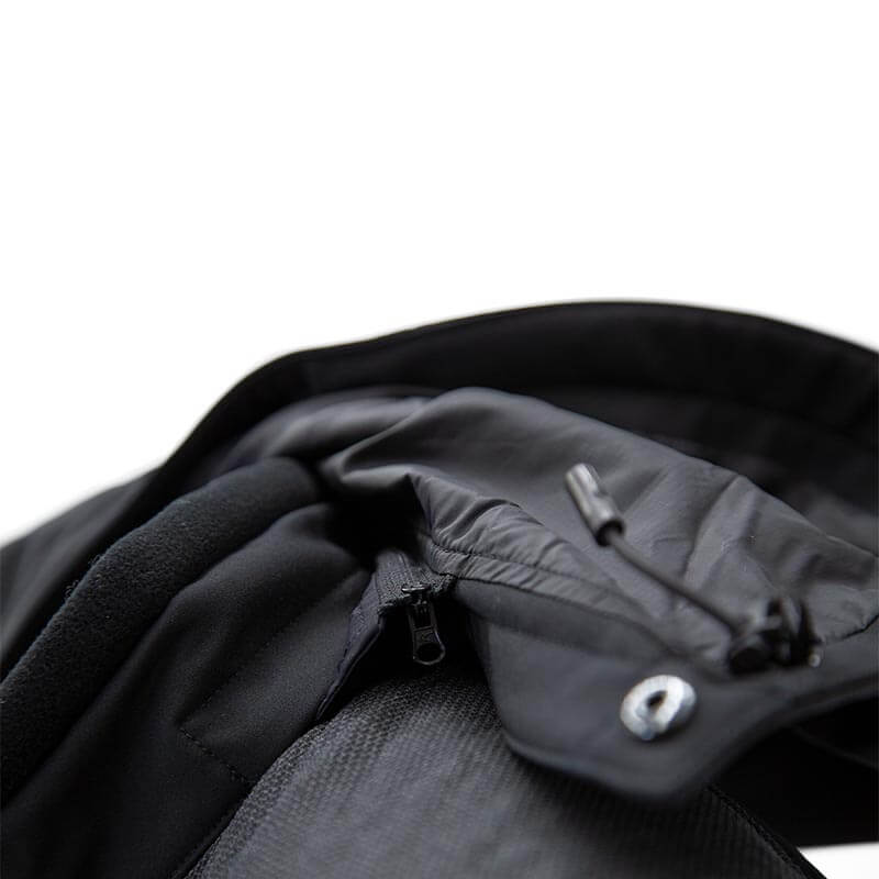 Alle äußeren Reißverschlüsse sind wasserabweisend und mit Zipperpulli ausgestattet. Somit lassen sie sich auch mit Handschuhen gut öffnen bzw. schließen. Der Front-Reißverschluss besitzt zusätzlich auf der Innenseite einen Wind- und Kinnschutz. Die großen gefütterten Fronttaschen, in denen sogar deine Trinkflasche ihren Platz finden könnte, reichen fast bis zu den Schultern. Seitlich neben diesen Taschen findest du nochmals zwei Reißverschlüsse, die sowohl der Belüftung aber auch als Durchgriff für eine Pistole dienen. Auch sonst geizt die ISG Pro nicht mit Taschen. Zwei weitere Einschubtaschen findest du auf der Innenseite und zwei auf der Brust und dazu noch zwei aufgesetzte Taschen mit Reißverschluss und großer Klettfläche an den Oberarmen. Genug also für ausreichend Equipment.