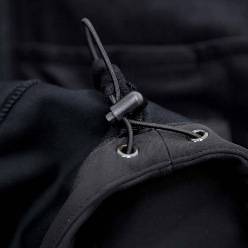 - angeschnittene, helmkompatible Kapuze, mittels Kordelstopper und Kordel 2-fach verstellbar