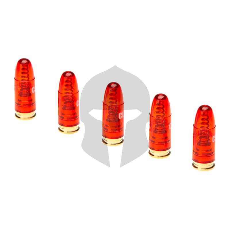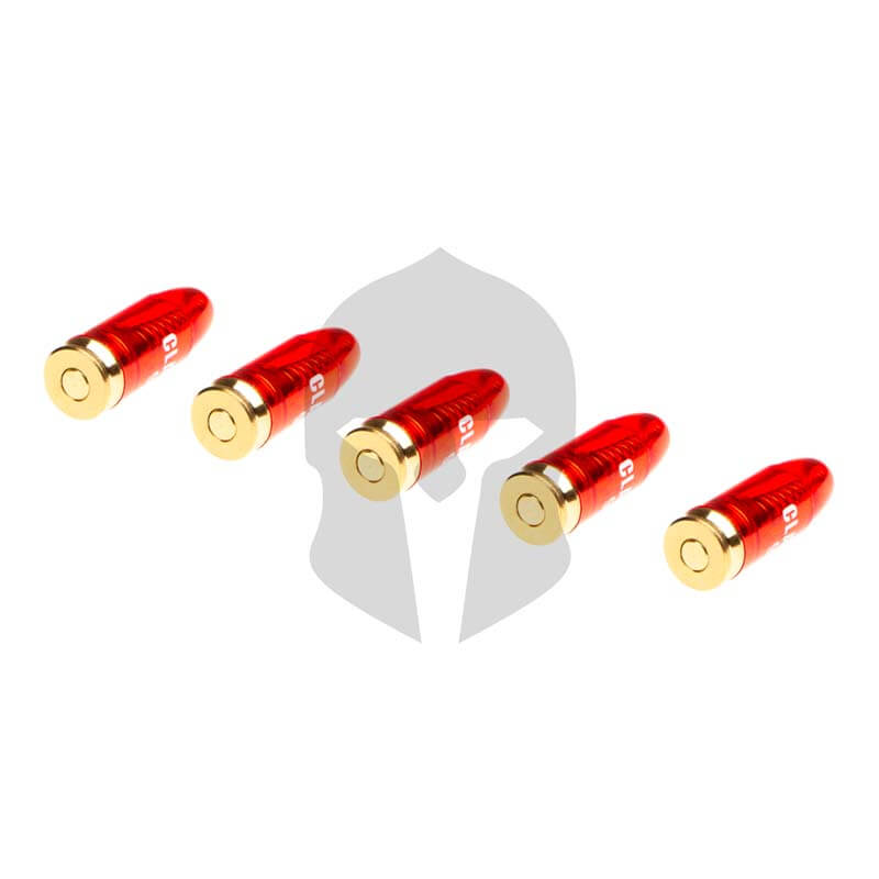 Die Clawgear Snap Caps, auch bekannt als Puffer- oder Dummy-Patronen, sind wieder verwendbar und schützen die Feuerwaffe vor Beschädigungen beim Trocken-Training. Die hochwertige Messing-Schlagfläche und die innenliegende Feder bieten optimalen Schutz für den Schlagbolzen und die rote Signalfarbe sorgt für eine sofortige optische Unterscheidung zur Originalpatrone.