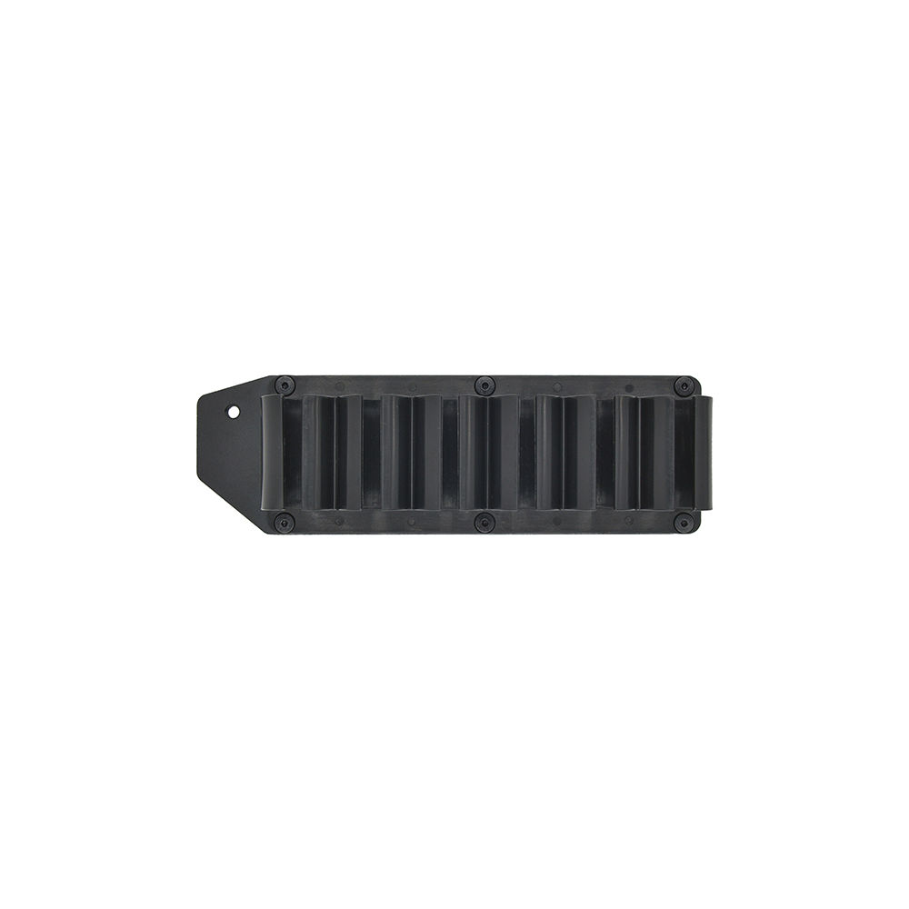 Der Shotshell Carrier nimmt 6 Schrotpatronen im Kaliber 12 auf. Er wird auf den Systemkasten aufgeschraubt. Die passenden Schrauben sind im Lieferumfang enthalten.