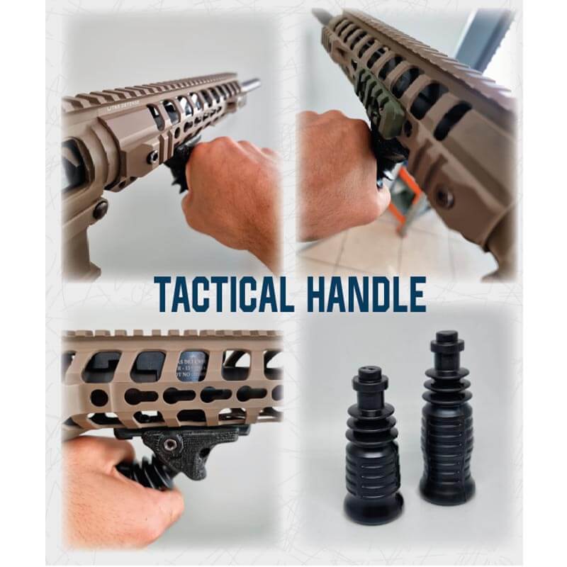 Der DPM Griff gewährleistet einen festen Kontaktpunkt mit dem Waffensystem und lässt sich leicht lösen, wenn eine komplexe Situation dies erfordert. Seine Flexibilität ermöglicht außerdem eine vollständig beidhändige 360°-Beweglichkeit mit automatischer Rückkehr zur ursprünglichen Griffposition.