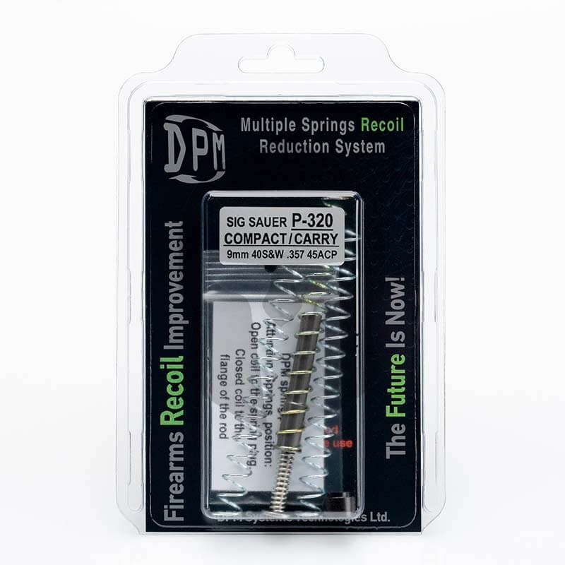 Das mechanische DPM Rückstoß Dämpfungssystem für SIG Sauer (Recoil Reduction System) ist ein direkter Ersatz für die Federführungsstange, benötigt keinerlei Modifizierung an der Kurzwaffe und ist für SIG P320 geeignet. Das System verhindert ein Aufschlagen des Schlittens auf die Endposition des Griffstücks, wodurch man eine nachweislich bessere Kontrolle über die Waffe erhält. Die deutliche Reduzierung des Rückschlages beim Schießen führt in der Folge zu einer besseren Schussleistung und schnelleren Schussfolge.