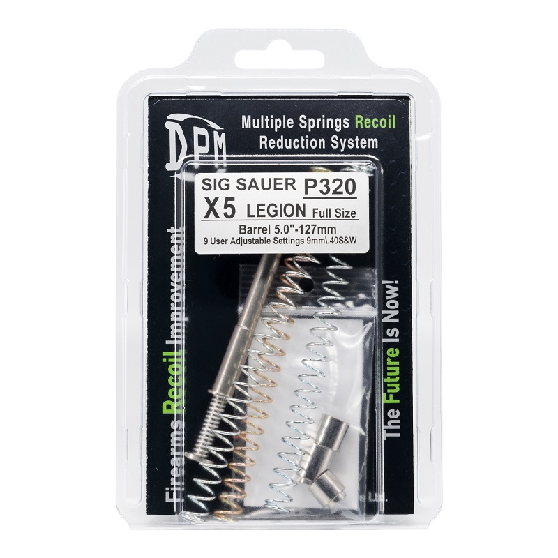 Das mechanische DPM Rückstoß-Dämpfungssystem für SIG Sauer (Recoil Reduction System) ist ein direkter Ersatz für die Federführungsstange, benötigt keinerlei Modifizierung an der Kurzwaffe und ist für SIG P320 geeignet. Das System verhindert ein Aufschlagen des Schlittens auf die Endposition des Griffstücks, wodurch man eine nachweislich bessere Kontrolle über die Waffe erhält. Die deutliche Reduzierung des Rückschlages beim Schießen führt in der Folge zu einer besseren Schussleistung und schnelleren Schussfolge.