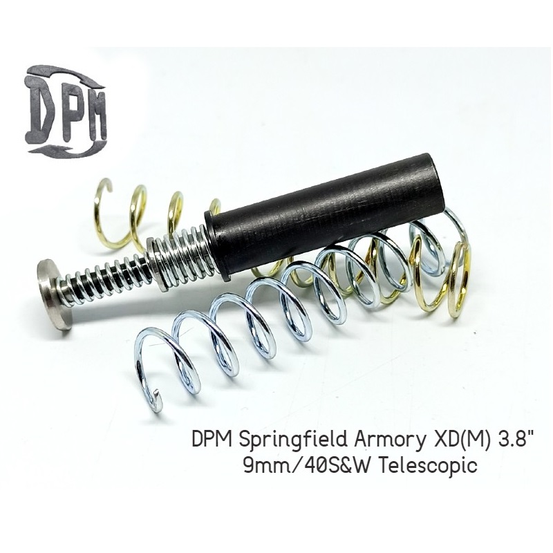 Das mechanische DPM Rückstoß-Dämpfungssystem für die Springfield Armory XD(M) 3,8″ (Telescop Recoil Reduction System) ist ein direkter Ersatz für die serienmäßige Federführungsstange, benötigt keinerlei Modifizierung an der Kurzwaffe. Das System verhindert ein Aufschlagen des Schlittens auf die Endposition des Griffstücks, wodurch man eine nachweislich bessere Kontrolle über die Waffe erhält. Die deutliche Reduzierung des Rückschlages beim Schießen führt in der Folge zu einer besseren Schussleistung und schnelleren Schussfolge.