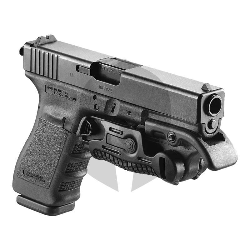 Der FGGK-S von FAB Defense ist ein klappbarer Vordergriff mit Abzugssicherung und verändert sich per Knopfdruck von einer vertikalen Stellung zu einer horizontalen. Somit bietet er eine äußerst taktische Option zur Verbesserung der natürlichen “Kampfstellung”. Er lässt sich schnell und einfach bedienen, leicht anbringen und erhöht außerdem die Sicherheit bei durchgeladenen Waffen mittels Abdeckung des Abzugs.