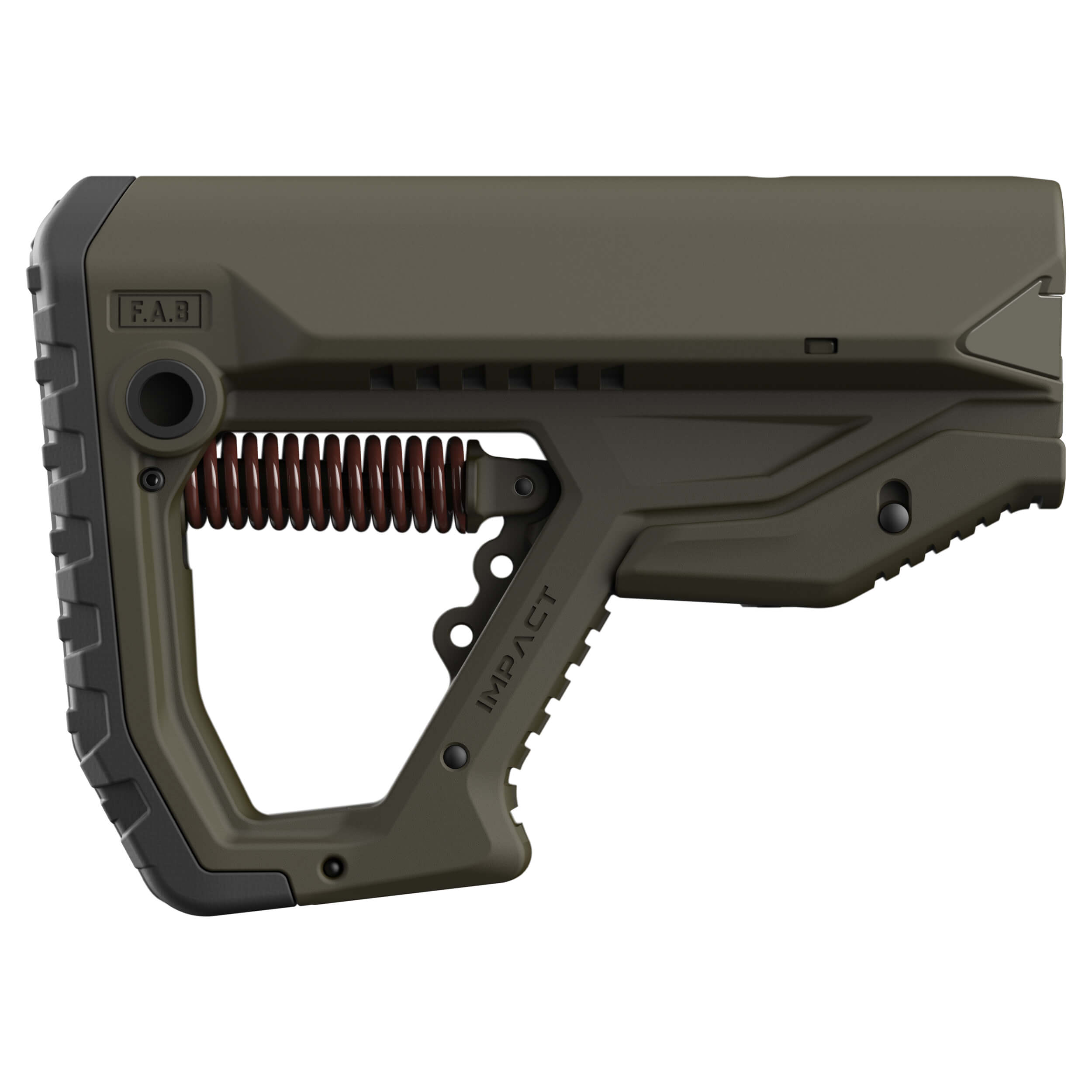 Der GL-Core Impact von FAB Defense ist eine Rückstoß absorbierende Schulterstütze mit einem 3-fach verstellbaren Mechanismus, um den Grad der Rückstoßdämpfung an deine Bedürfnisse und das entsprechende Kaliber anpassen zu können. Es ist egal, ob man auf weite Entfernungen mit dem 5.56er oder auf kurze Distanzen mit Schrot schießt, der Hinterschaft bietet das, was man braucht. Die ergonomisch geformte Schaftkappe sorgt dabei für ein hohes Maß an Effizienz und Komfort und die zum Lieferumfang gehörenden Tube-Adapter ermöglichen eine optimale Passform für MIL-SPEC und kommerzielle Buffer-Tubes.