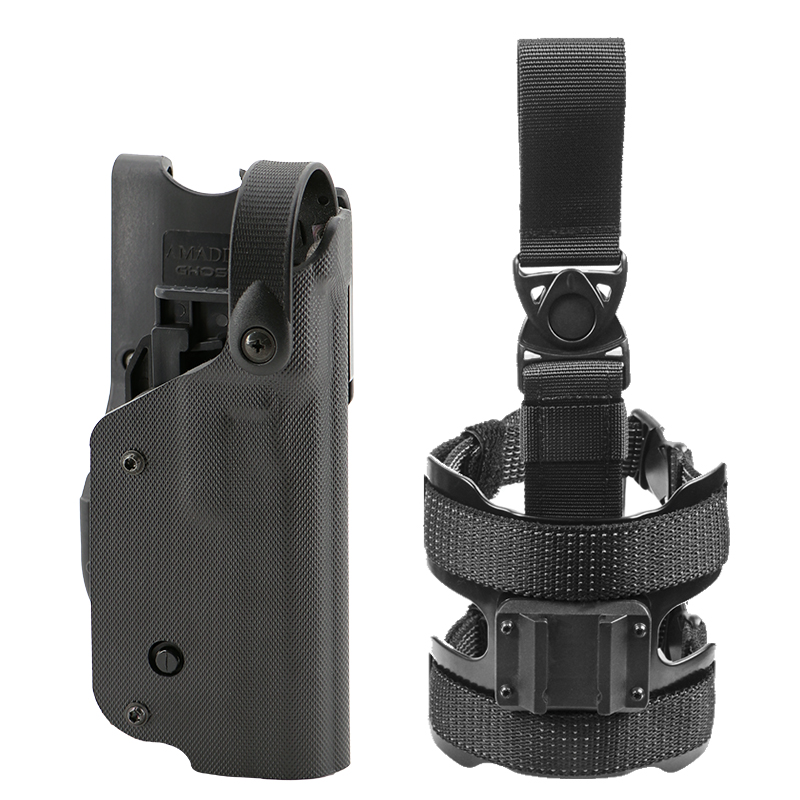 Das Ghost 5.2 Tactical Holster Level III für GLOCK wurde speziell für Militär- und Strafverfolgungszwecke entwickelt und ist eine Weiterentwicklung des meistverkauften Ghost 3 aus dem Jahr 2018. Es verfügt über einen Sicherungssystem, welches sich intuitiv bedienen lässt. Das Holster wird mit dem Rotation Modul zur Gürtelmontage (90° schwenkbar) und dem passenden Oberschenkelgurt geliefert.