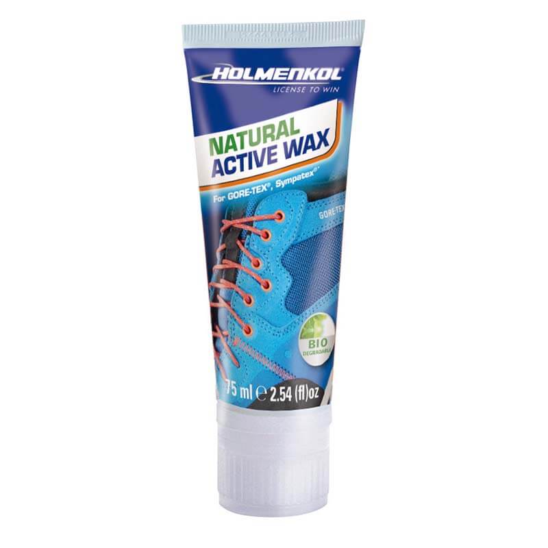 Ideal zur Pflege atmungsaktiver Wander- und Outdoor-Schuhe – das Natural Active Wax von Holmenkol. Es ist eine Intensivpflege einschließlich Imprägnierung nicht nur für Membrangewebe, wie z. Bsp. Gore-Tex®, sondern auch für Lederarten. Es lässt das Wasser an der Oberfläche einfach abperlen und erhält zusätzlich die Atmungsaktivität der Membrane. Das hochwirksame Wachs lässt sich leicht mit Hilfe des integrierten Schwammes auf den gereinigten Schuh auftragen und fertig!