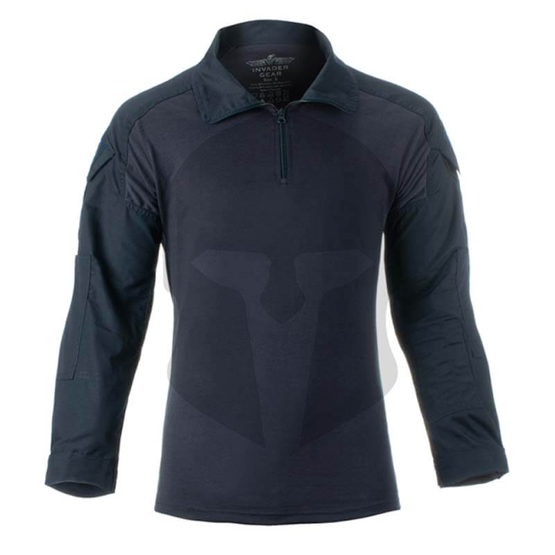 Das Combat Shirt navy ist ein leichtes und angenehm zu tragendes Tactical Shirt aus der neuen Serie von Invader Gear. Der moderne Schnitt sorgt für eine sehr gute Bewegungsfreiheit. Getragen wird es insbesondere unter einem Plattenträger, um Druckstellen zu vermeiden und um einen idealen Transport von Feuchtigkeit von der Haut weg zu gewährleisten. Beide Ärmel sind mit schräg aufgenähten Taschen am Oberarm sowie Klett für ID Patches und der linke Ärmel zusätzlich mit einem Einschub für Stifte o.ä. ausgestattet. Die Ellbogen sind mit einer zweiten Stoffschicht verstärkt, welche gleichzeitig als Einschubfach für Ellbogenschoner dient.