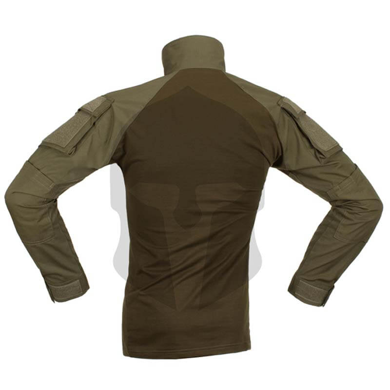 Das Combat Shirt ranger green ist ein leichtes und angenehm zu tragendes Tactical Shirt aus der neuen Serie von Invader Gear. Der moderne Schnitt sorgt für eine sehr gute Bewegungsfreiheit. Getragen wird es insbesondere unter einem Plattenträger um Druckstellen zu vermeiden und um einen idealen Transport von Feuchtigkeit von der Haut weg zu gewährleisten. Beide Ärmel sind mit schräg aufgenähten Taschen am Oberarm sowie Klett für ID Patches und der linke Ärmel zusätzlich mit einem Einschub für Stifte o.ä. ausgestattet. Die Ellbogen sind mit einer zweiten Stoffschicht verstärkt, welche gleichzeitig als Einschubfach für Ellbogenschoner dient.