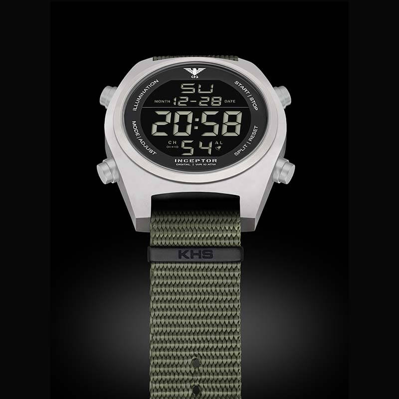 KHS Uhr Inceptor Steel Digital mit Natoband steingrau-oliv