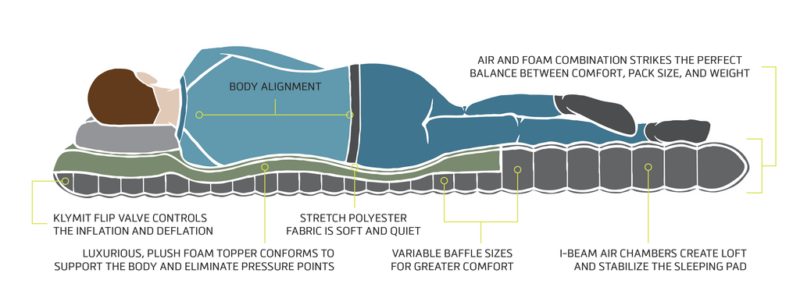 Die Klymaloft™ REG Isomatte von Klymit verfügt über ein innovatives Schaum- und Luftdesign, das für erstklassigen Schlafkomfort sorgt. Eine weiche Schaumstoffauflage stützt den Körper und eliminiert Druckpunkte, während die darunterliegenden I-BEAM-Luftkammern Loft erzeugen und die Isomatte stabilisieren. Die Kombination aus Luft und Schaum bietet die perfekte Balance zwischen unübertroffenem Komfort, Packmaß und Gewicht.
