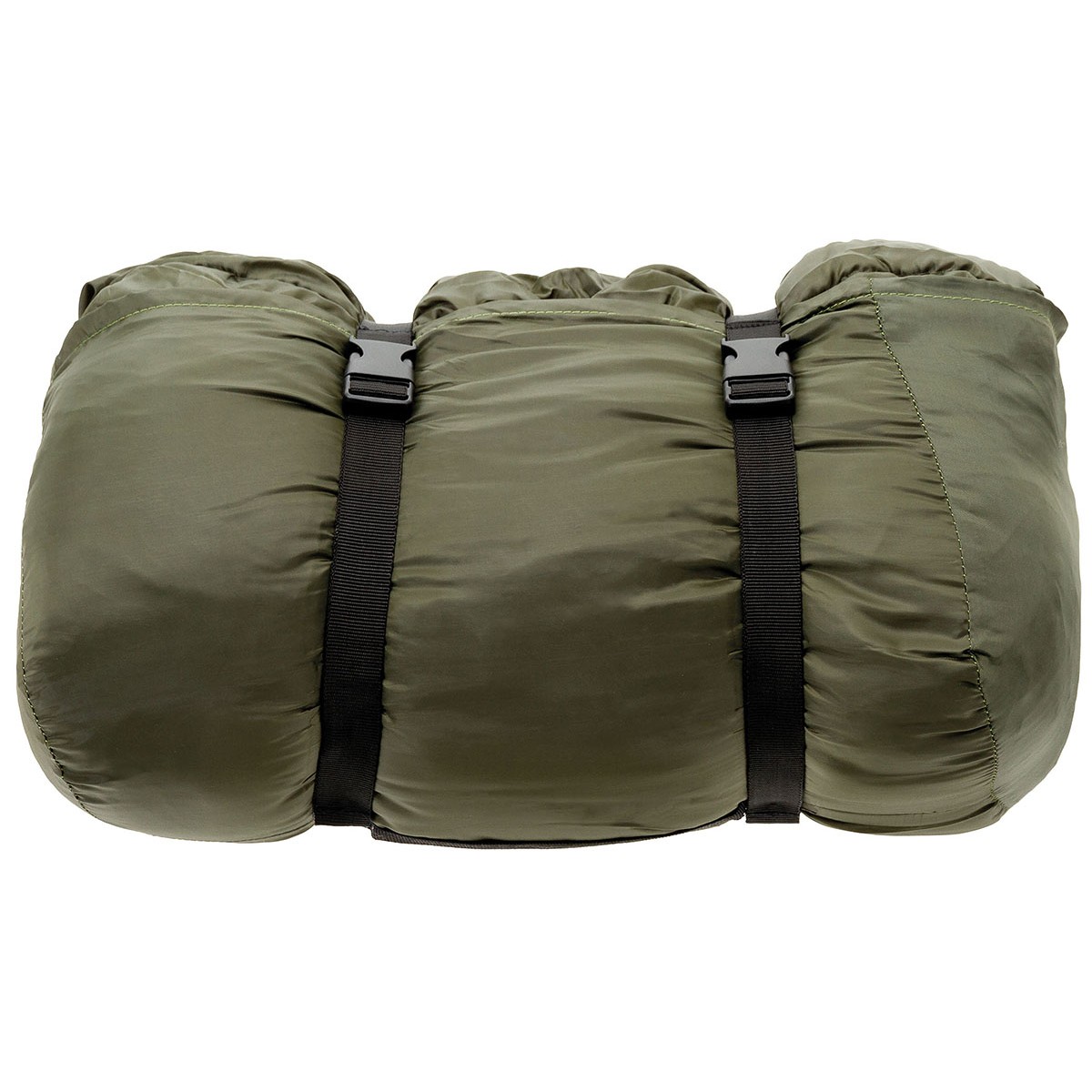 Der Israelische Pilotenschlafsack oliv von MFH ist ideal geeignet für Camping und Outdoor-Aktivitäten. Das Besondere an ihm – er ist an einen zweiten Schlafsack koppelbar. Somit erhältst du einen XXL Schlafsack. Durch seinen geraden Schnitt und den zweiseitigen Reißverschluss lässt er sich auch aufklappen und als Decke verwenden. Zudem können durch die spezielle Verteilung der Nähte keine Kältebrücken entstehen und somit ist dieser Pilotenschlafsack kältezonenfrei. Die zweilagige Füllung besteht aus Hohlfaser-Polyester, wodurch eine gute Isolation erreicht wird. Durch die Kapillarwirkung dieser Hohlfaser wird die abgegebene Körperfeuchtigkeit vom Körper wegtransportiert. Das kleine Packmaß sowie das geringe Gewicht machen diesen Schlafsack zum perfekten Begleiter, egal ob Frühling, Sommer oder Herbst.