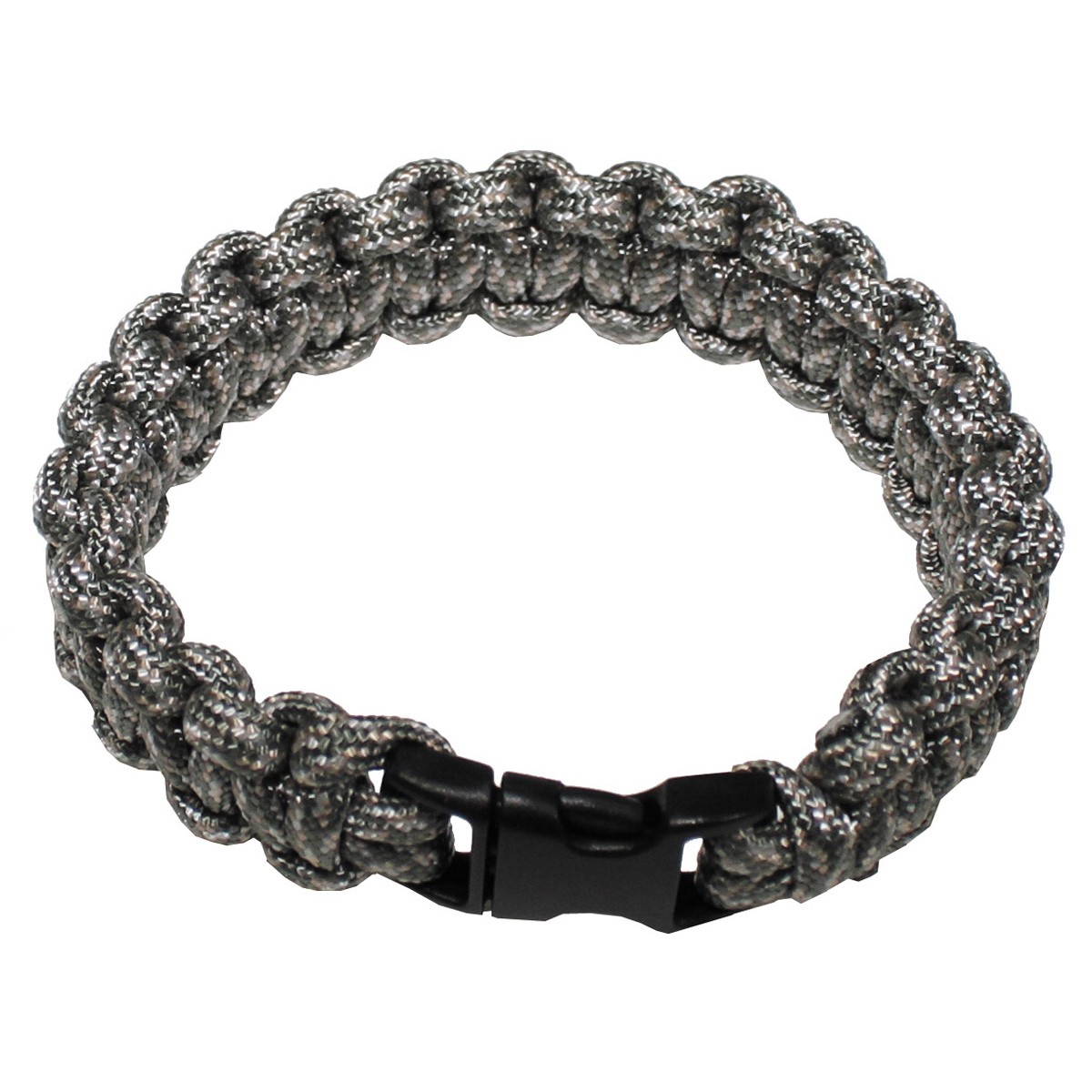 Das originelle Survival-Armband AT-digital von MFH mit Clipverschluss ist eine zum Armband geflochtene Fallschirmleine. Somit dient es nicht nur als stylisches Accessoire für deinen Arm, sondern lässt sich im Notfall auch aufflechten. Die ca. 2,25 – 2,70 m lange Fallschirmleine dient dann als äußerst stabiles Seil. Egal ob du dich abseilen, eine Hängematte am Baum befestigen oder einfach nur stylisch aussehen möchtest, das Armband ist hierfür stets der richtige Begleiter auf jeder Survival Tour.