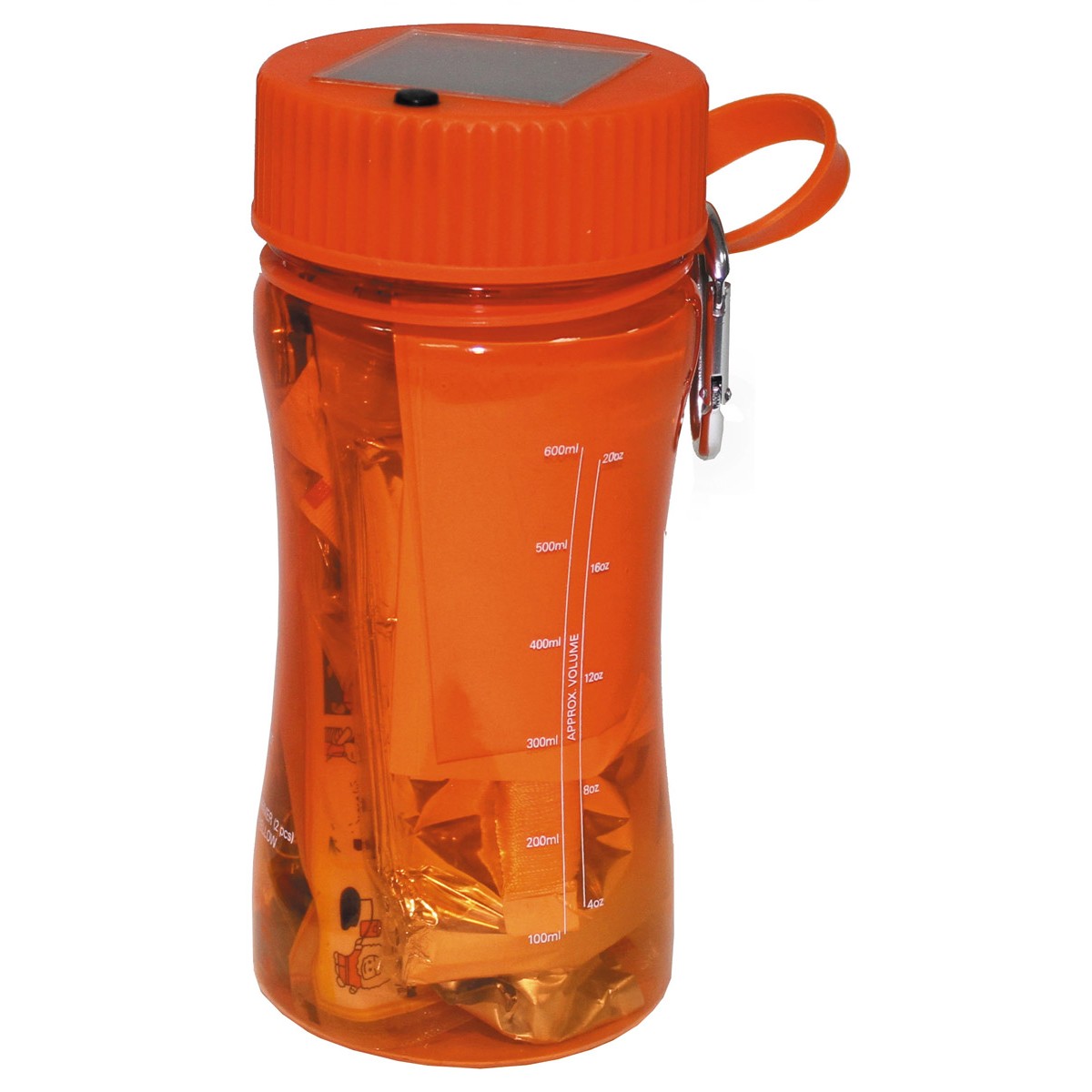 Mit dem Überlebensset Extreme von MFH erhältst du ein umfangreiches Sortiment mit allen notwendigen Utensilien, die du für das Überleben in einem Notfall fernab der Zivilisation benötigst. Aufbewahrt ist alles in einem wasserdichten Behälter aus Kunststoff mit Schraubdeckel. Im Deckel integriert ist eine Solarlampe mit 3 weißen LED`s für Dauerlicht und 3 roten LED`S für Blinklicht. Der Behälter mit ausgewiesener Messskala ist ebenso gut als Trinkflasche geeignet.