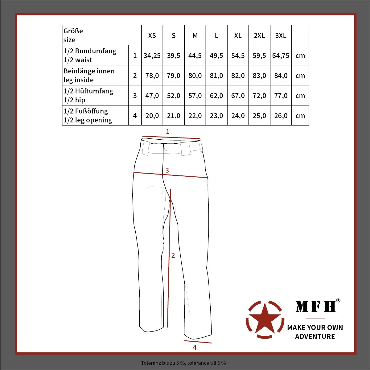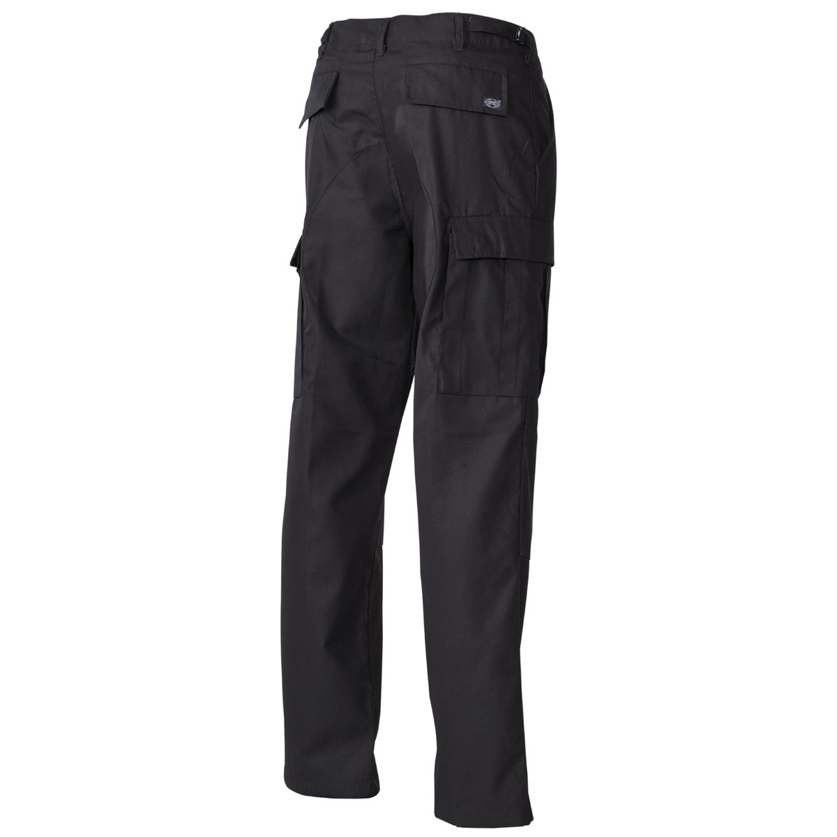 Diese klassische MFH US Kampfhose Army BDU in schwarz ist bequem, pflegeleicht und durch doppelt verstärkten Knie- und Gesäß-Bereich äußerst robust. Die Taillenweite ist individuell verstellbar. Die US Kampfhose ist ideal geeignet für alle Outdoor-Aktivitäten und bietet mit ihren 6 Taschen genügend Stauraum.