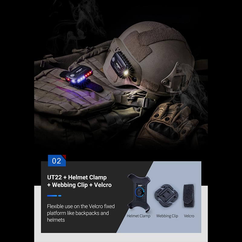 Die zuverlässige Halterung sorgt für einen sicheren Halt auf Schulterklappen, Einsatzwesten, Molle oder am Rucksack. Die Rückseite der Lampe ist magnetisch – so kann man diese auch auf dem Fahrzeugdach sicher befestigen. Der extra starke Akku ist über einen integrierten USB-C-Anschluss unabhängig von speziellen Ladegeräten wiederaufladbar. Mit einer Aufladung besitzt die UT21 genug Leistung für bis zu 25 Stunden Dauereinsatz.