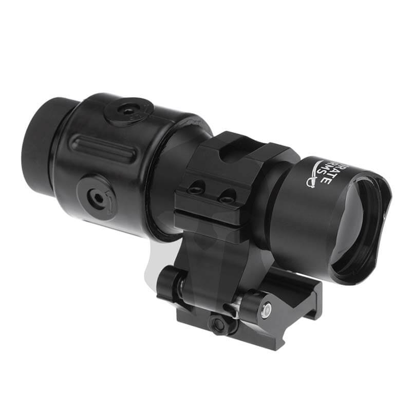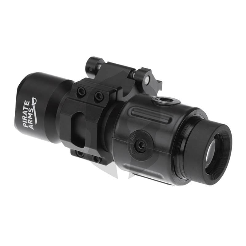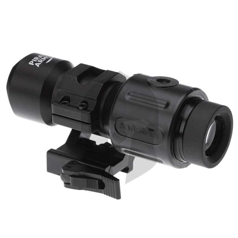 Der Pirate Arms 3.FTS Magnifier ist ein Vergrößerungsglas mit 3-facher Vergrößerung und kann vor Red Dot Zielvisiere montiert werden. Somit sieht man das Ziel 3-fach vergrößert und mit Rotpunkt. Das Besondere – der Magnifier verfügt über eine Flip-To-Side Option. Per Knopfdruck springt er zur Seite und das Red Dot kann ohne ihn benutzt werden.