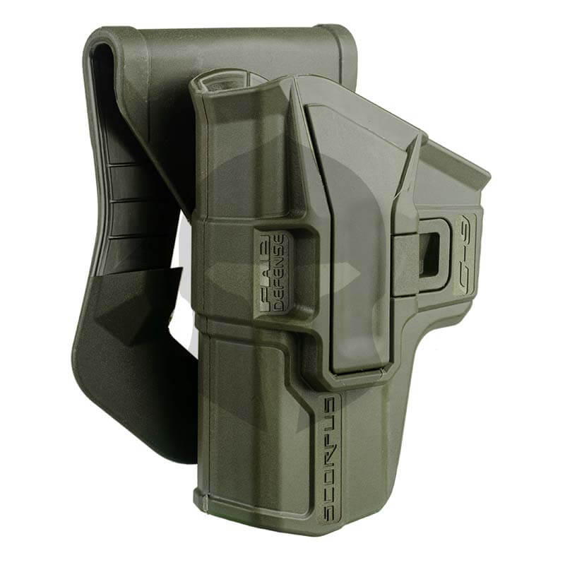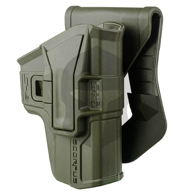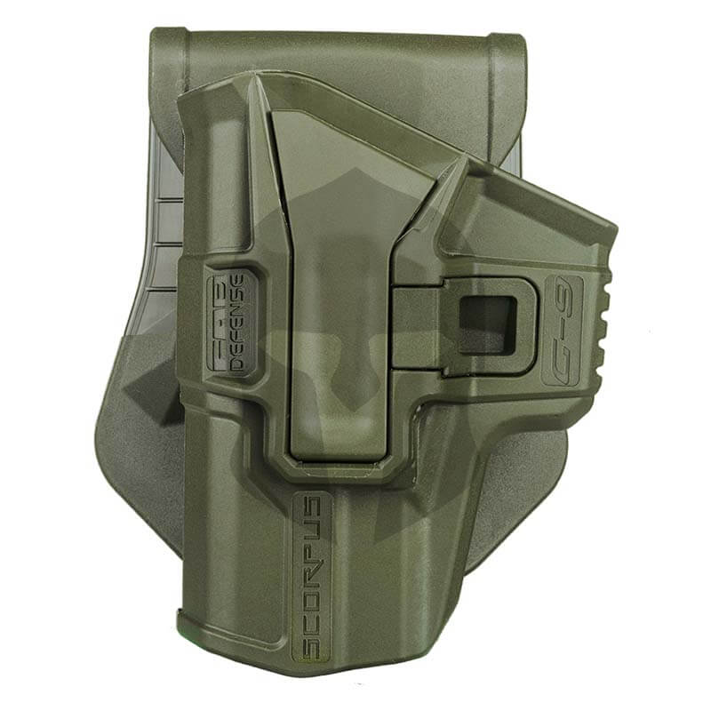 Das Scorpus M1 Level 1 Holster GLOCK mit Retention System ist die bekannteste Holster Konfiguration von FAB Defense und für viele GLOCK Modelle geeignet. Es verfügt über ein einzigartiges, druckaktiviertes Rückhaltesystem, wobei zwei gegenüberliegende passive Rückhalte Vorrichtungen in den Abzugsbügel der Pistole greifen und sicher halten. Um die Pistole zu ziehen, muss der Schütze den Griff festhalten und dann einen sauberen Zug ausführen. Zum Lieferumfang gehören zwei austauschbare Adapter (Paddle + Belt) und dank einer Neigungseinstellung von 20° kann das Holster leicht den speziellen Anforderungen und Tragearten angepasst werden.