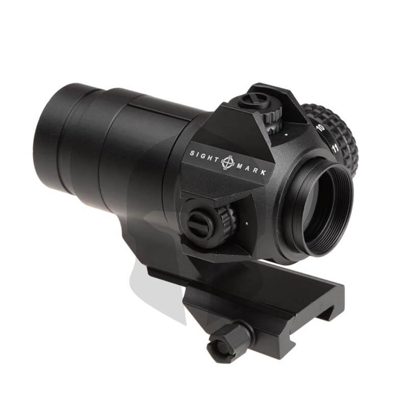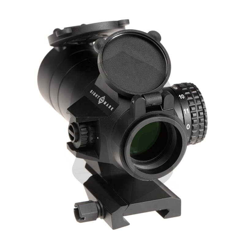 Das innovative und verbesserte Element 1×30 von Sightmark ist ein 2-MOA-Leuchtpunkt-Visier, das sich perfekt für das Schießen mit beiden Augen auf AR-Gewehren und Flinten eignet. Es verfügt über eine praktische Klemmhalterung, wodurch Volumen reduziert und ein schlankes Design erreicht wird. Die vielleicht nützlichste Funktion des Elements sind seine Einstellkappen. Diese befinden sich auf der Höhen- bzw. Seiteneinstellung und dienen zum Schutz vor ungewolltem Verstellen aber auch, wenn man diese ab- und umdreht, als Hilfsmittel zur Feineinstellung der Visierung. Das Design des Visiers schützt diese Einstellkappen auch mit erhöhten Kanten. Das robuste und kompakte Gehäuse aus Aluminium-Legierung ist ca. 2,5 cm kürzer als herkömmliche Visierungen, wodurch eine längere Lebensdauer im Einsatz erreicht werden kann. Das Red Dot ist mit Nachtsicht kompatibel, wasserdicht und stoßfest. Außerdem bietet das Element, je nach verwendeter Helligkeitseinstellung eine Akkulaufzeit von 100 bis 15.000 Stunden.
