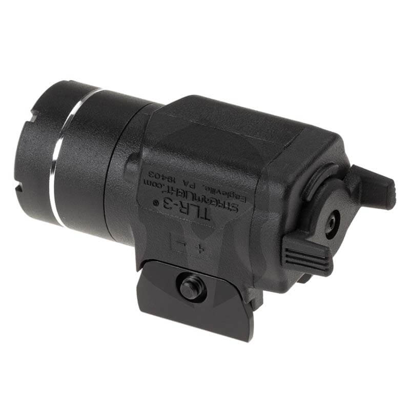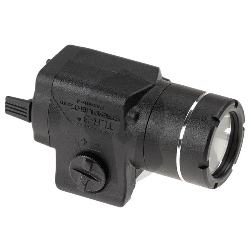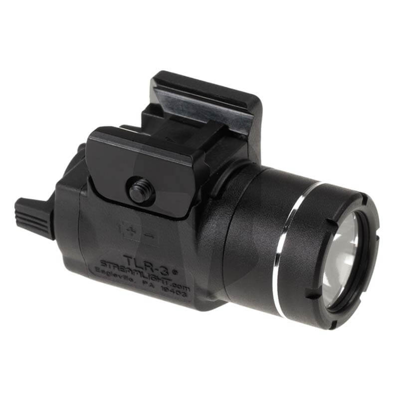 Die TLR-3 von Streamlight ist ein leichtes und kompaktes taktisches Licht und bietet dank der neuesten C4 LED-Technologie eine koninuierliche Leuchtdauer von 1,5 Stunden mit einer einzigen Lithium Batterie. Der glatte Parabolreflektor erzeugt einen konzentrierten Strahl mit optimaler peripherer Beleuchtung und eine optimierte Elektronik sorgt für geregelte Intensität. Die Lampe passt auf kompakte und Kleinst-Handfeuerwaffen sowie normale Handfeuerwaffen mit Schienen.