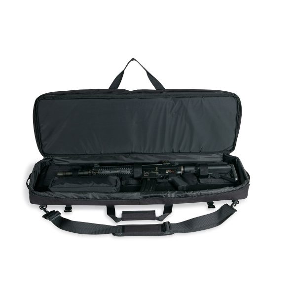 Die Tasmanian Tiger Modular Rifle Bag ist eine hochwertige und aufwendig ausgestattete Gewehrtasche für Waffen bis zu einer Länge von 101 cm. Für einen sicheren Transport der Langwaffe sind die Seitenteile der Tasche optimal gepolstert. Die Modular Rifle Bag verfügt über zwei Außentaschen für zusätzliches Equipment, so dass das Mitführen von weiteren externen Taschen nicht mehr notwendig ist. Diese sind mit zahlreichen Schlaufen, Fächern sowie Magazintaschen ausgestattet, wodurch sämtliches Zubehör gut organisiert und schnell griffbereit untergebracht ist. Außerdem ist sie mit einem abnehmbaren Tragegurt sowie zwei Tragegriffen für ein horizontales oder vertikales Tragen ausgestattet.