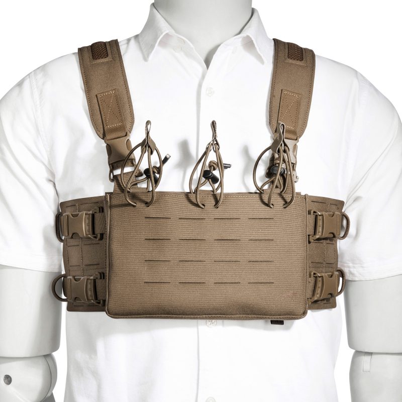Leicht, flexibel, modular einsetzbar und somit perfekt für Polizei und Militär sowie Schützen – das Small Combi Rig von Tasmanian Tiger. Trotz seines minimalistischen Designs punktet der Trainings- und Einsatz-Rig mit einer ausgesprochen hohen Funktionalität und überzeugt durch seine individuelle Anpassbarkeit und die Verwendungsmöglichkeit für verschiedene Magazingrößen. Außerdem lässt er sich auch dank mitgelieferter Schnallen als Front-Flap für unterschiedlichste Plattenträger nutzen. Seine Modularität erhält der Rig zum Einen durch Lasercut-Molle auf der Front und an den Seiten-Wings, wodurch er mit zusätzlichen Taschen erweiterbar ist, und zum Anderen durch die Verwendung von sinnvoll einsetzbarem Klett, wie z. Bsp. bei`m Magazinmodul. In diesem können drei M4 (PMAG)-Magazine oder vier Pistolen-/MP7-Magazinhalter befestigt werden. Diese sind abklettbar und im Lieferumfang enthalten. Klett-Trenner für speziellere Magazinformen, wie G36- oder HK417-Magazine oder andere Ausrüstung, werden ebenfalls mitgeliefert.