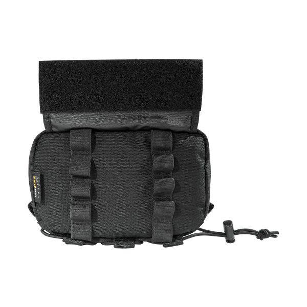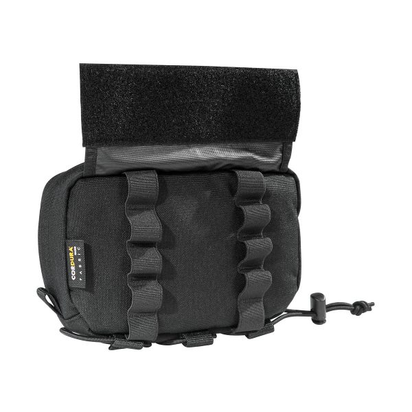 Die Tac Pouch 12, eine modulare zusätzliche Fronttasche von Tasmanian Tiger, ist mit nahezu jedem Plattenträger mit Klett besetztem Frontpanel und Kummerbund kompatibel. Der weit zu öffnende YKK-Reißverschluss ermöglicht schnellen Zugriff auf das Hauptfach, welches mit Netztasche, elastischen Schlaufen und D-Ring ausgestattet ist. An der Front verfügt sie über Gurtbandschlaufen, am Boden über einen flexiblen Durchschub mit zusätzlich längenverstellbarem Bungee Cord und elastische Schlaufen für Equipment an der Rückseite. Die Tasche ist einklettbar und nicht mit Molle zu befestigen.