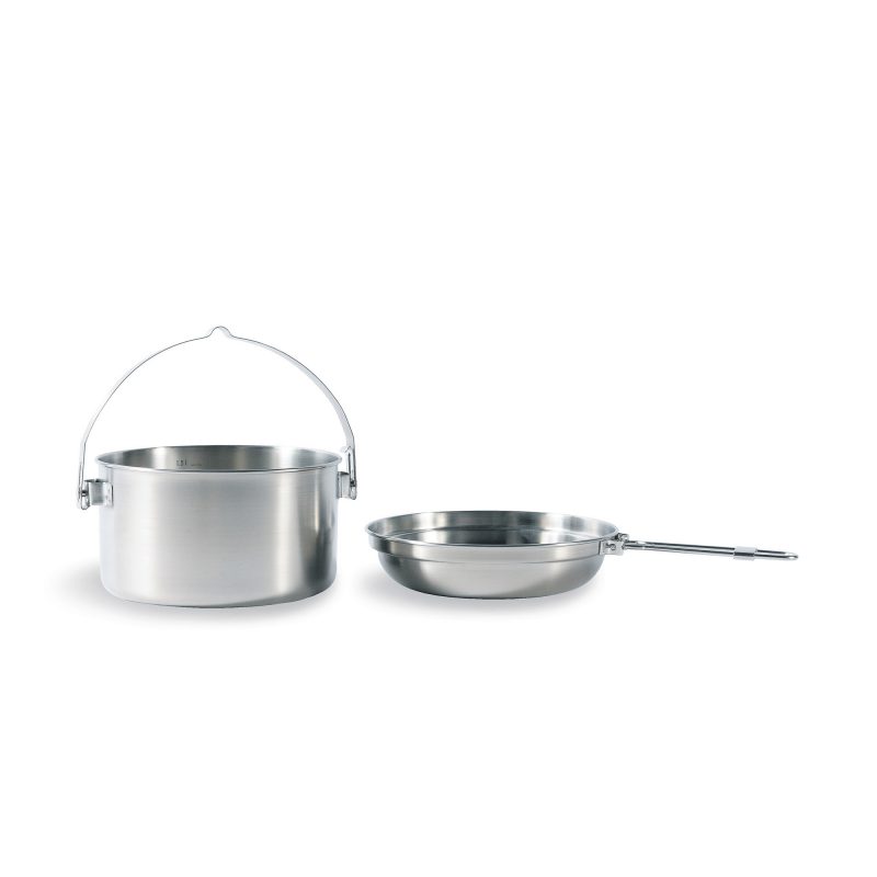 Der Kettle 1,6 von Tatonka ist ein vielseitiges und leichtgewichtiges Komplett-Set mit geringem Packmaß. Es besteht aus einem Topf mit praktischer Volumenskalierung und einer Pfanne, die gleichzeitig als Topfdeckel oder auch als Teller verwendet werden kann. Das Geschirr ist aus rostfreiem, lebensmittelechten und schadstofffreien 18/8 Edelstahl gefertigt, sehr langlebig, robust und einfach zu reinigen.