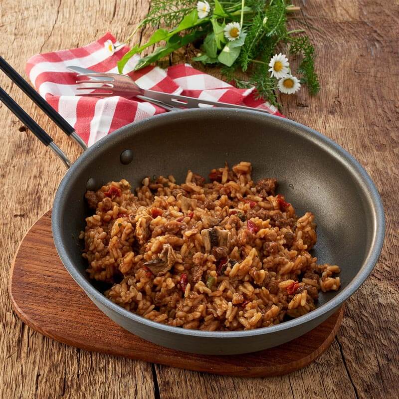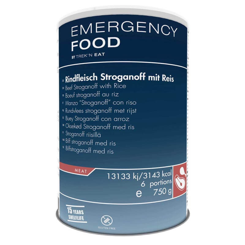 Benannt nach der russischen Adelsfamilie Stroganoff besteht die Emergency Food Komposition des Klassikers aus Rindfleisch und Reis. Die kulinarische Hommage an die Namensgeber und des Sankt Petersburg Ende des 19. Jahrhunderts bietet Gourmetfreuden für Feinschmecker. Für den individuellen Geschmack kann – je nach Bedarf und Zutaten im Gepäck – mit Paprika, Estragon, Essig, Sherry, Cognac oder Weißwein verfeinert werden. Doch auch ohne Zugaben ist das Rindfleisch Stroganoff mit Reis ein herzhafter Klassiker in der Outdoorküche, der seine Fans über die Grenzen der nordwestlichen Millionenstadt mit bewegender Geschichte seit nunmehr zwei Jahrhunderten gefunden hat.
