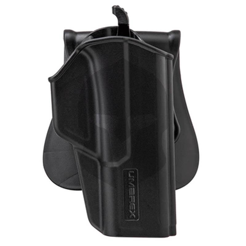 Das Umarex Paddle Holster Model 2 für GLOCK ist ein Schnellzieh-Holster mit Sicherung und gummiertem Paddle, das sich optimal an die Waffe anpasst. Es verfügt über einen obenliegenden Entriegelungshebel für Daumenbedienung und ist dreifach höhenverstellbar.