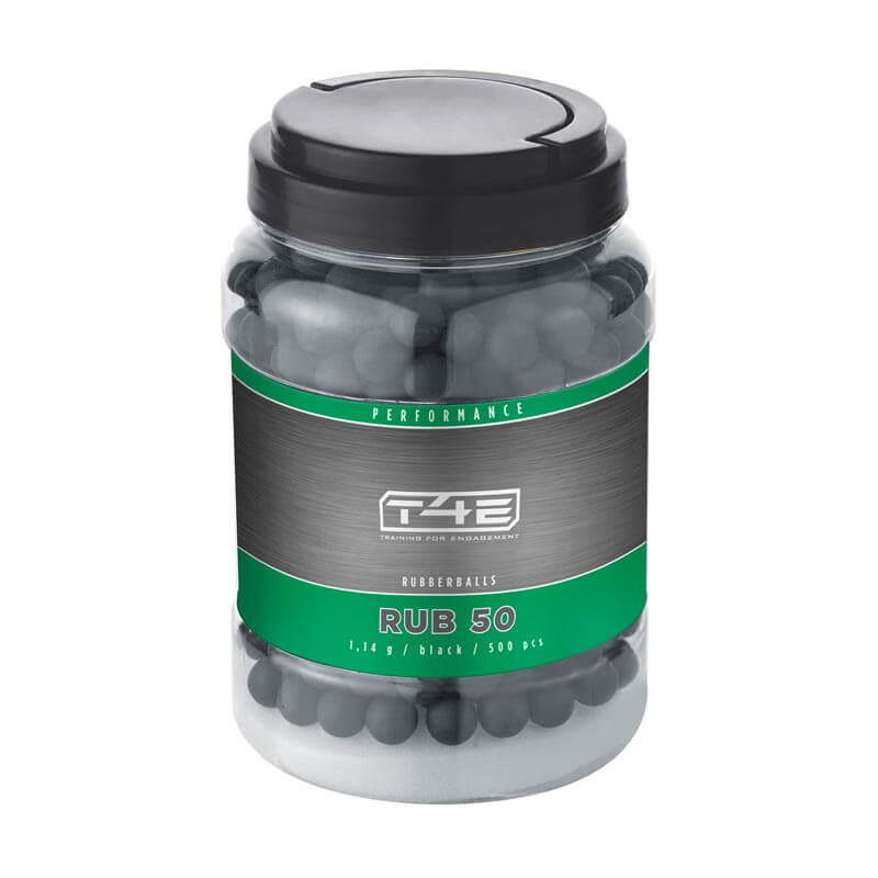 Gummirundkugeln haben sich für kostengünstiges Training mit T4E-Markierern längst durchgesetzt. Der deutlich spürbare Aufprall der Rubberballs auf dem Ziel steigert die Aufmerksamkeit und sorgt so unter Adrenalin für realistische Verhältnisse beispielsweise bei Force-on-Force-Szenarien.
