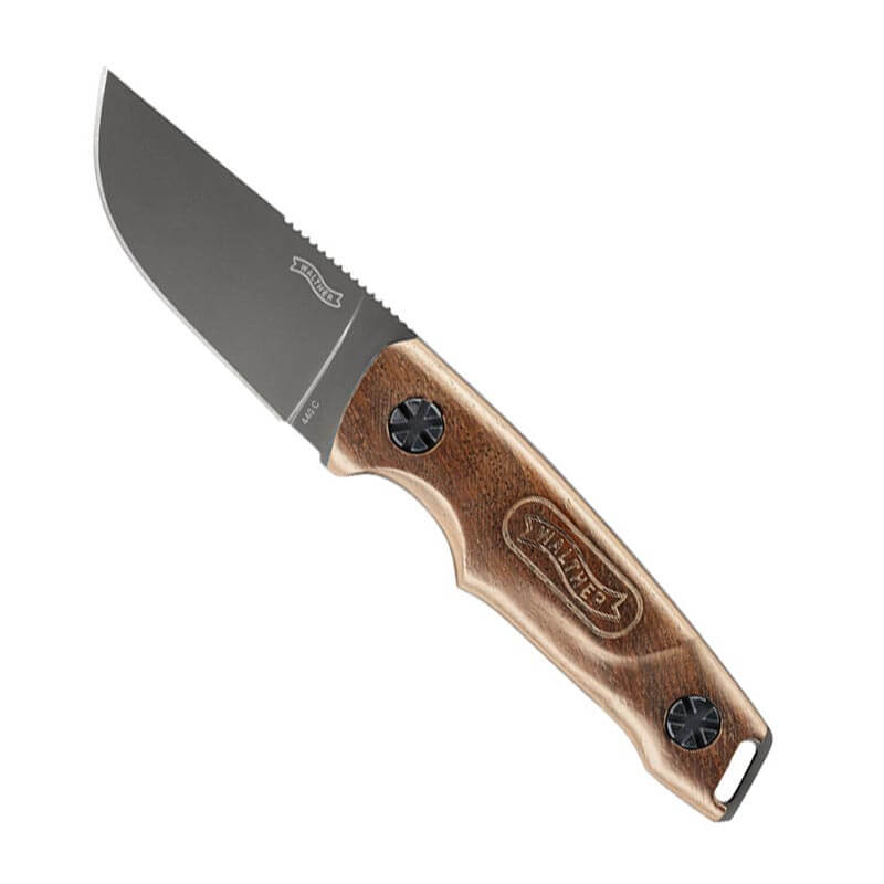 Ein gutes Stück Natur am Gürtel: Das BWK 6 macht mit seinen beeindruckenden Griffschalen aus Walnussholz und den gebläuten Linern einen edlen Eindruck. Praktisch in einer Köcher-Lederscheide getragen wartet das Fixed-Blade mit seiner rund 4 mm starken Drop-Point-Klinge aus titanisiertem 440C auf seinen Einsatz. Das Blue Wood Knife zeichnet sich als kompaktes Gebrauchsmesser vor allem durch seine gute Führigkeit aus. Der Griff der Vollerl-Konstruktion liegt satt in der Hand und die ausgeprägte Daumenrampe garantiert sicheres Arbeiten, wenn das Messer härter beansprucht wird.