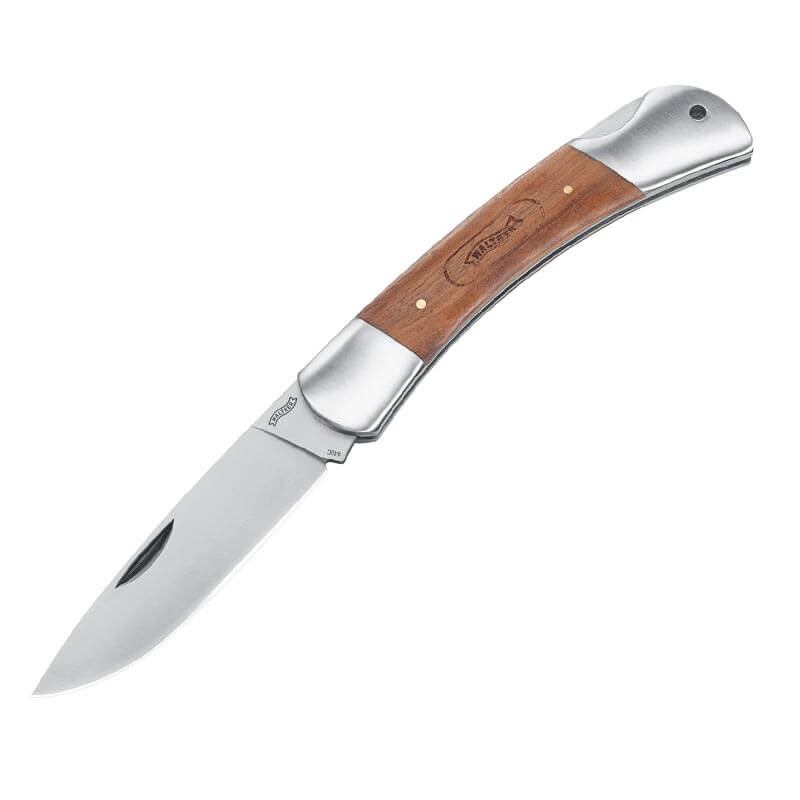 Die gefällige Form der Droppoint-Klinge aus satiniertem 440C-Klingenstahl verbindet ein traditionelles Erscheinungsbild mit hoher Vielseitigkeit. Der Griff mit Walnussholz-Beschalung und Edelstahlbacken sowie die Backlock-Verriegelung vervollständigen die klassische Anmutung und machen aus dem Classic Drop 1 von Walther ein stabiles und ausgewachsenes Taschenmesser für Jagd, Outdoor und viele weitere Gelegenheiten. Lieferung mit Leder-Gürtelholster.
