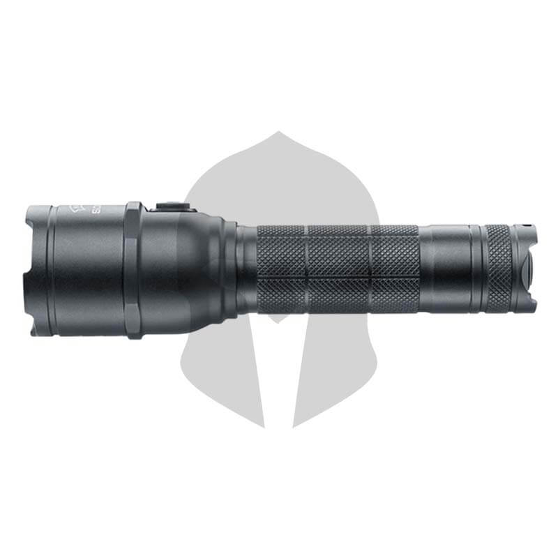 Die Walther LED Taschenlampe SDL 400 ist das Einstiegsmodell der Service-Detection-Light-Series und ist bereits mit allen Features ausgestattet, die die SDL-Serie so interessant machen. Sie ist in Zusammenarbeit mit den Behörden entwickelt und lässt sich leicht mit Handschuhen bedienen, ohne die besonderen Eigenschaften zu beeinträchtigen. Die Helligkeitsstufen wechseln per Knopfdruck von 415 Lumen auf 40 Lumen und zurück und sind nach ANSI FL1 Norm gemessen. Das Tactical-Defense-Strobe und die UV-LED (Wellenlänge 365 nm) sind leicht erreichbar und sofort einsatzbereit. Dank mitgelieferter Batteriefächer kann die SDL 400 wahlweise mit Akku oder verschiedenen Batterietypen betrieben werden. Die Bedienung der Taschenlampe ist denkbar einfach. Der taktische Schalter am Lampenende dient zum Ein- und Ausschalten und bei längerem Drücken zum Umschalten in den Stroboskop-Modus. Mit dem vorderen Schalter wechselt man zwischen den Modi (100% oder 10% Leistung) und bei längerem Drücken in den UV-Modus zum Überprüfen von Ausweispapieren und Identifizierung von Flüssigkeiten..