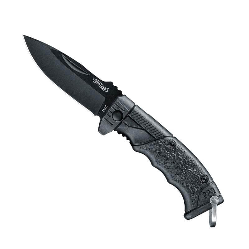 Ausgeklappt gerade mal 11 cm lang, geschlossen 63 mm, und fast so leicht wie ein Standardbrief: Das Micro PPQ hat seinen Namen doppelt verdient, als Messer-Knirps wie durch die konsequent verkleinerte Hi-Grip-Oberfläche, die man von der Erfolgspistole Walther PPQ kennt. Die 48 mm kurze, schwarz beschichtete Spearpoint-Klinge besteht aus 440C-Hochleistungsstahl und lässt sich mit der zweiten Hand über den Nagelhau öffnen – ein handliches Messer, das man mit der Anhängeöse immer am Schlüsselbund tragen kann.